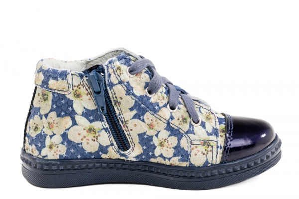 Яркие ботиночки выполнены полностью из натуральной кожи. С внутренней стороны расположена застежка-молния, что позволяет ребенку самостоятельно быстро обувать и снимать ботинки, используя шнурки только для регулировки по полноте. Подошва модели клеевая модной кедовой формы. Мягкий манжет создает комфорт при ходьбе и предотвращает натирание ножки ребенка. Эти ботиночки c цветочным принтом станут отличным дополнением к весёлым прогулкам весной и летом.Материал подошвы: ТЭП
